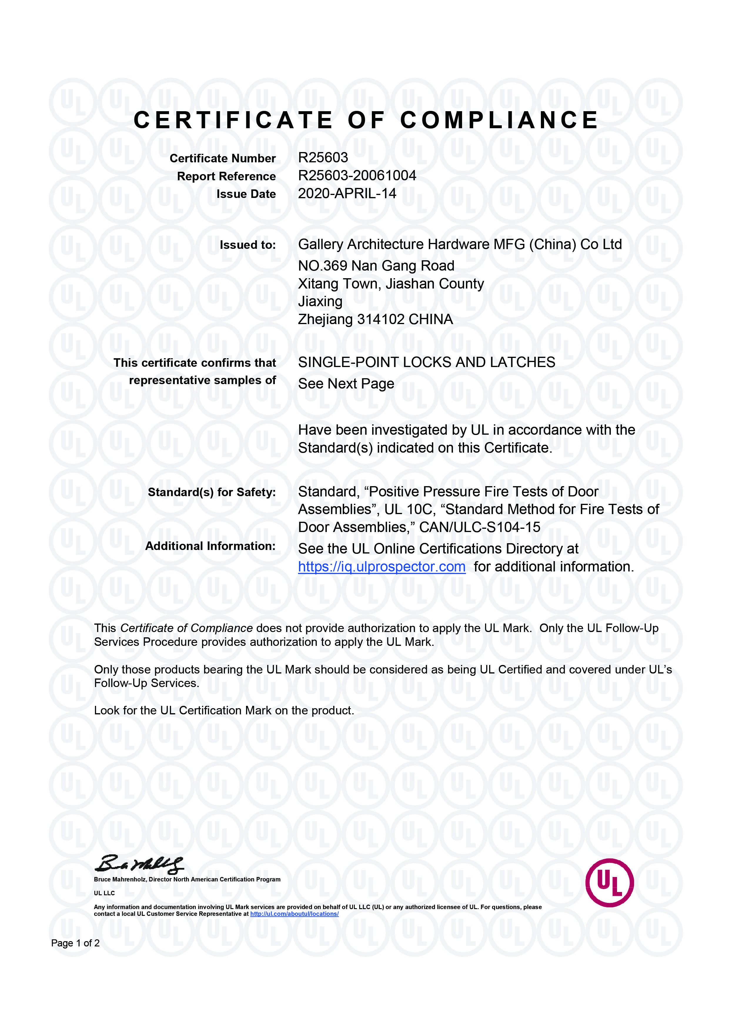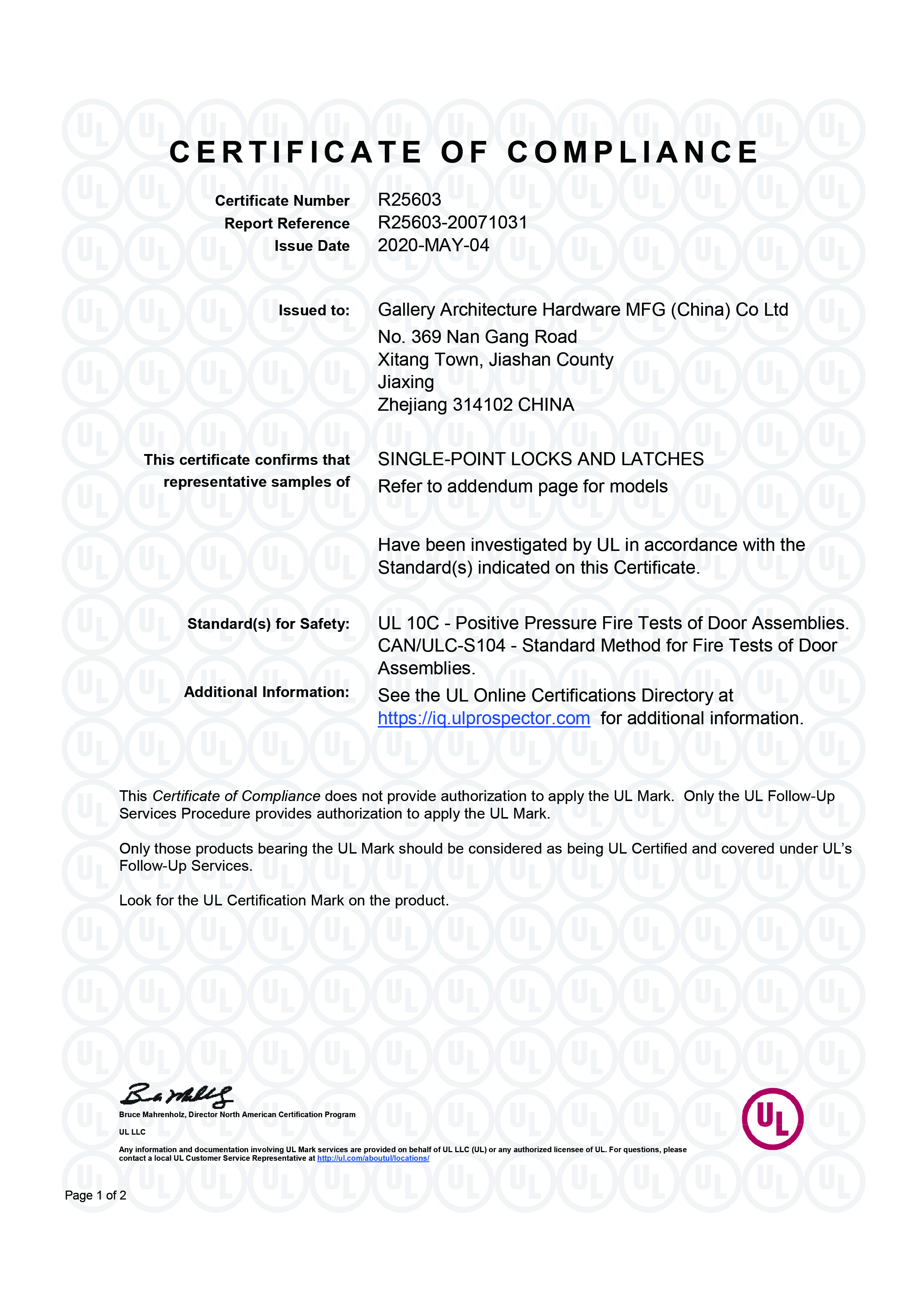 浙江堅迪五金制造有限公司始建于 1995 年。自 2003 開始,公司致力于高標準商業(yè)鎖的研發(fā)工作,并于 2006 及 2007 年,8700 插芯鎖系列獲得美國國家標準 ANSI A 156.13-2005 一級、ANSI A 156.2-2003 二級和美國 UL 10C3 小時防火測試認證。自 1998 年以來,公司不斷提升產(chǎn)品和客戶服務品質,并獲得了 ISO 9001 的認證。